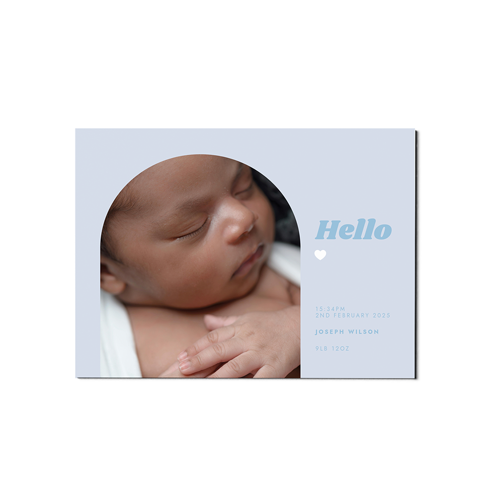 Design a personalised baby announcement - add your own photos and a heartfelt message to make it special. Choose from a flat or folded card, and select either a single card or a multipack.