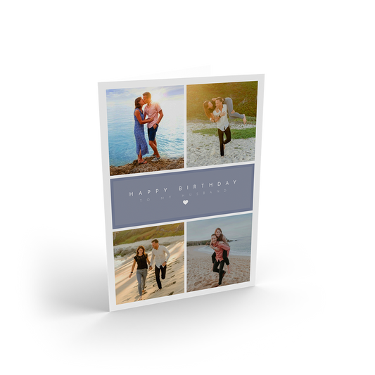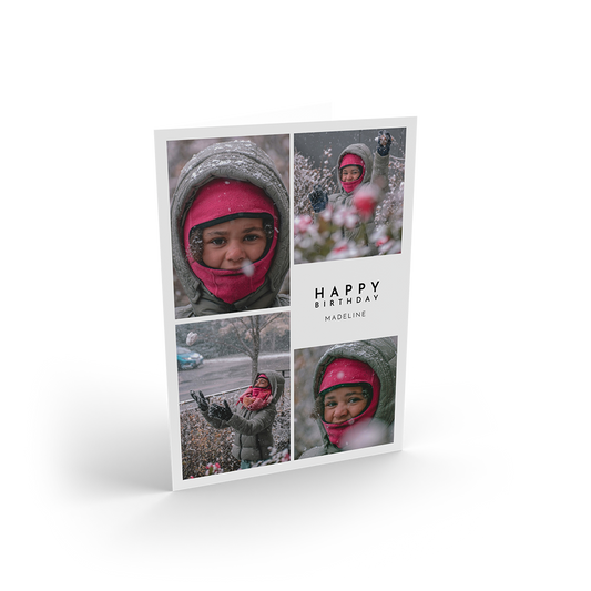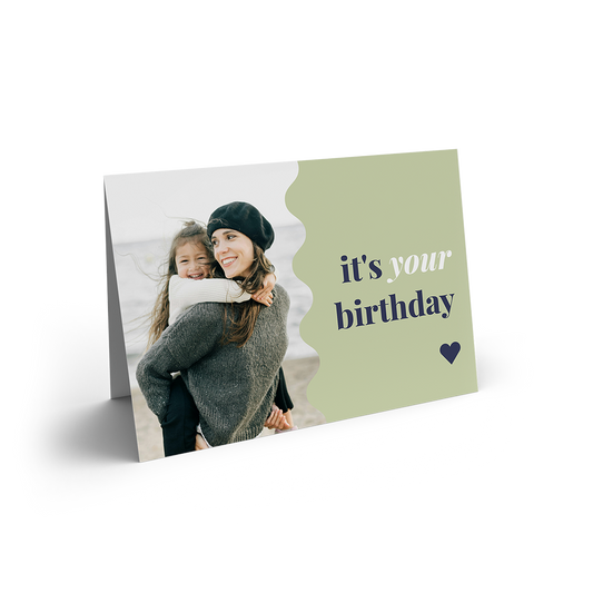 Design a personalised birthday card - add your own photos and a heartfelt message to make it special. Choose from a flat or folded card.