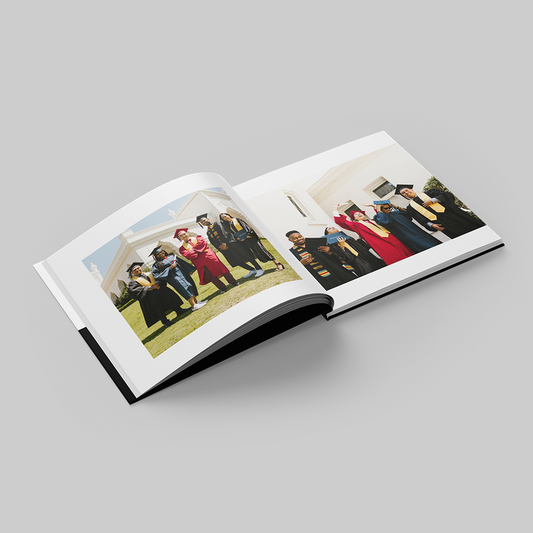 Hardcover photobooks features a custom-wrapped cover and high-quality archival paper with a semi-gloss finish.